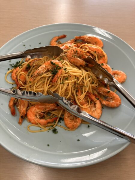 シェフ自らバナメイエビを選び、実際にすくっていただきました。